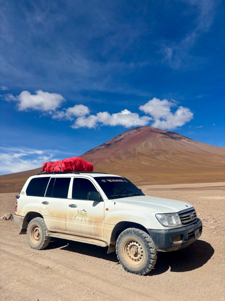 Luottorauta, tällä reitillä ei muun merkkisiä autoja näkynytkään. Mukava paikallinen kuski, ja mun lisäksi 5 muuta matkustajaa ympäri maailman. Vuorotellen joutuu olemaan sikaosastolla, pääsin pois kesken vuoroni kun oksensin. Vielä pitäis kaksi päivää jaksaa. Elämäni upein, ja ehkä myös hirvein automatka.