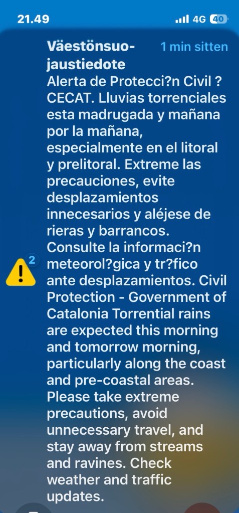 Sopivasti sattui sadepäivä tänään, illalla tuli väestönsuojelutiedote puhelimeen. Melkein säikähdin kun luuri alkoi ulista kun sireeni eikä hiljentynyt sitten millään.