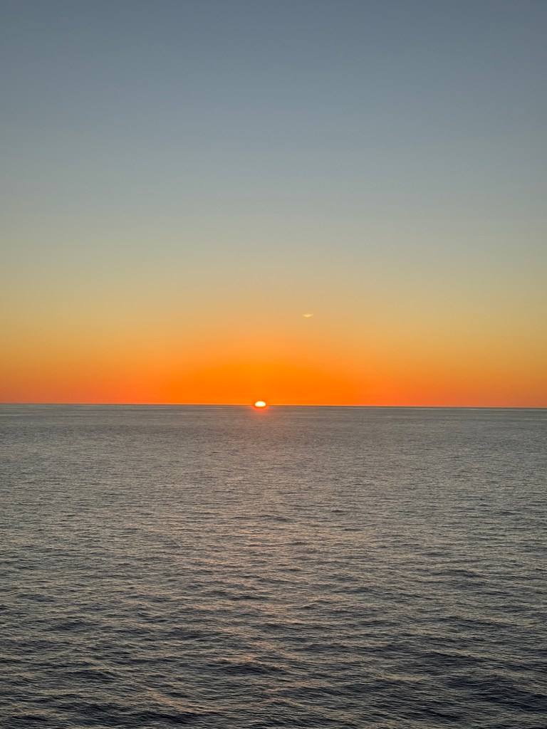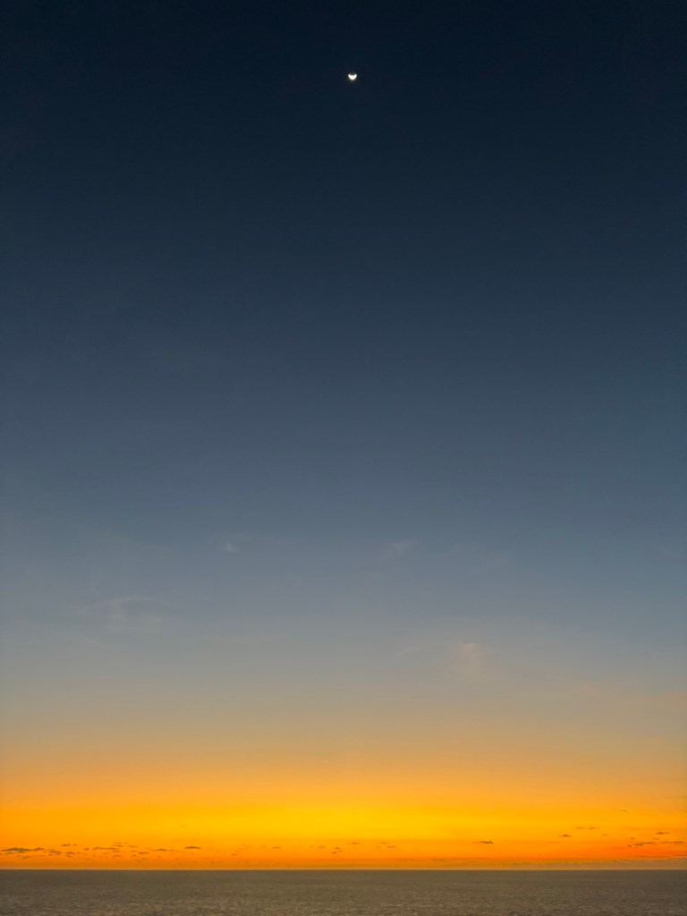 Laskee, aurinko nousee.